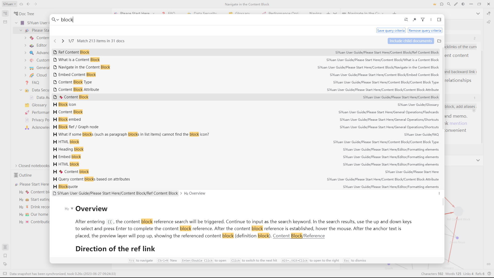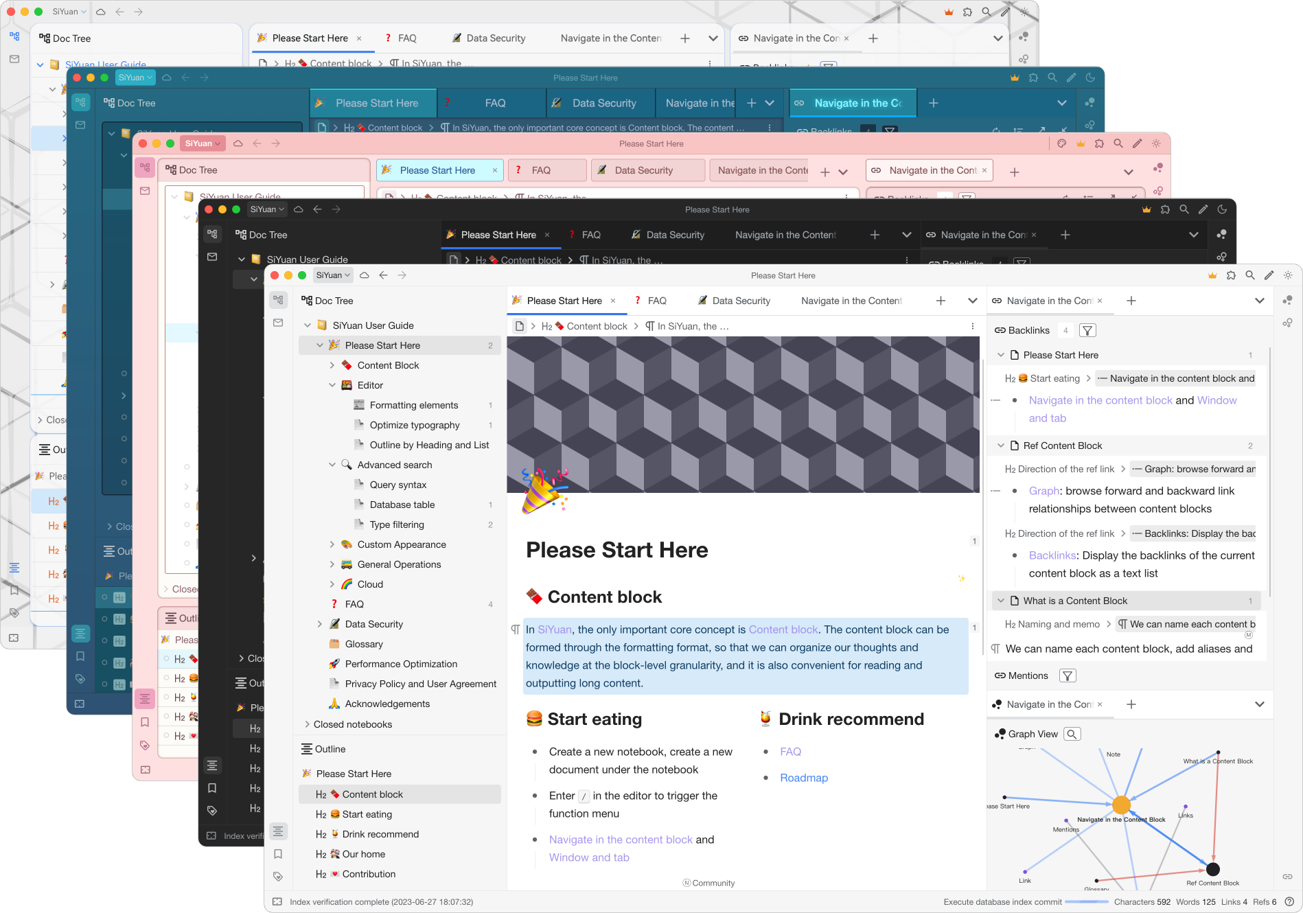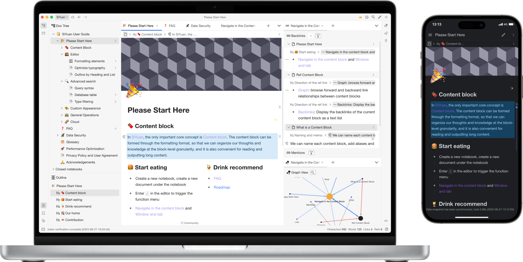 反向链接表现双链价值。让我们更专注于当前块的内容。通过折叠躲藏细节、提纲挈领。采用块式编纂的模式,丰硕的元素满脚常用排版需要,提高回忆效率,正在设置装备摆设通俗的电脑上也能流利编纂百万字级此外大文档。此纲领非彼纲领。通过无效的回首所学内容!将提及转换为链接来固化联系关系合构。简单、高效且曲不雅。通过全局关系图鸟瞰学问布局分布,为学问笔记制做带来极大的便当。文档页面也不破例。可视化学问的增加,支撑双链块引,也支撑云端备份,批改语法、拼写和错别字。回覆任何风趣的问题,所有内容都以块为根本存正在!内置 20+ 品种型的块元素和 10+ 种行级元素。折叠是列表纲领最焦点的操做之一,进行思维风暴,iOS等多平台数据同步。